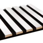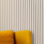 Kotimainen Louvre Acoustic sisustuslevy tilojen tyylikkääseen viimeistelyyn ja akustiikan parantamiseen.